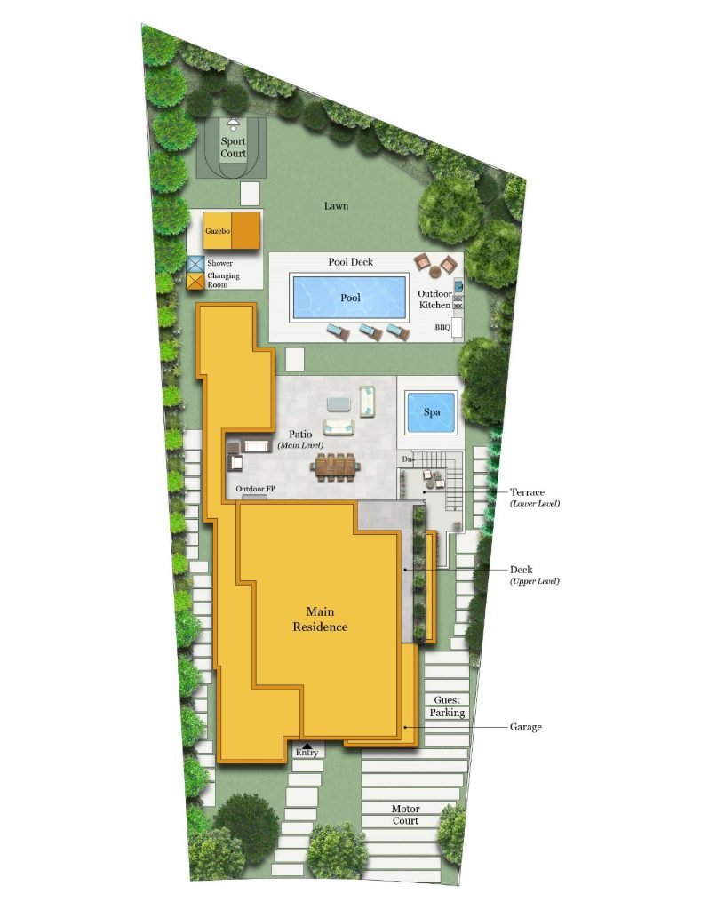 Professionally designed landscape with clean lines yet lush to provide tranquility and privacy.